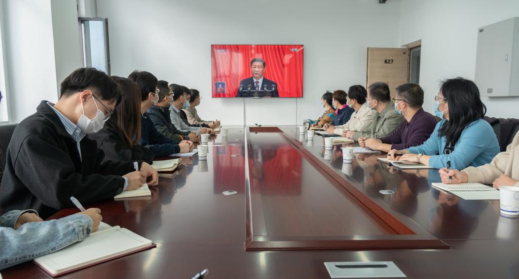 会场内,与会人员聚精会神地聆听报告并做笔记。听完报告后,大家倍感振奋、反响热烈,一致表示要认真学习、深入领会党的二十大精神,以饱满的热情迎接新起点新征程,用实际行动和优异成绩交出满意答卷。