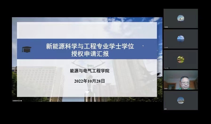 2022年10月28日上午,按照学校“关于做好我校2023年新增学士学位授权专业审核工作”的通知要求,在学校教务处安排组织下,我院召开线上“新能源科学与工程专业”新增学士学位授权专家评审会。学校教务处领导、教育部能源动力类教指委委员、校外评审专家、学位点负责人以及系部骨干教师参加了会议。