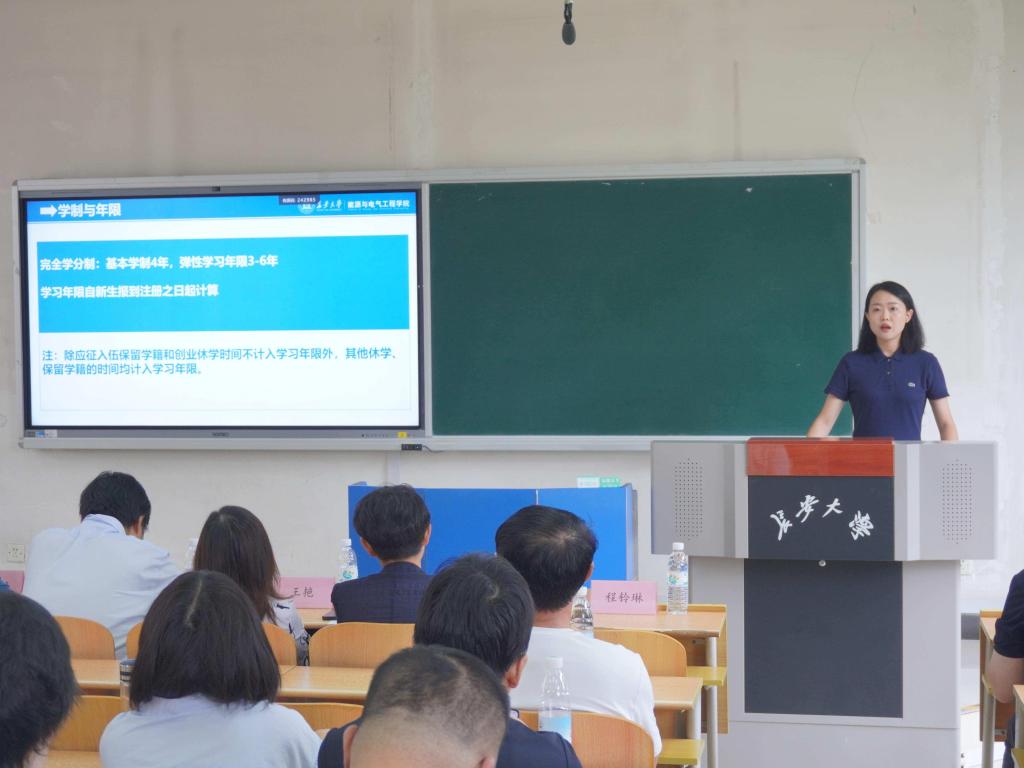 韩笑晨介绍了本科教学相关的学制与年限、考核与成绩、选课、推免等各项管理规定。刘泽围绕学生日常管理制度进行说明,并详细解读了学生在大学各阶段的成长特点、突出问题、教育理念,希望家长们与学院保持常态化沟通,深化家校共育,协力为学生搭建成长平台。白云昀、王欣宇介绍了2025级本科生基本情况及后期管理要求,表示将用心用情陪伴2025新生度过充实、多彩且富有意义的大学四年。
