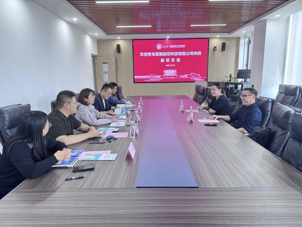 9月25日下午,青岛镭测创芯科技有限公司副总经理魏磊、人事经理李婷到qy千亿球友会座谈交流。qy千亿球友会副院长耿莉敏、创新创业教育中心主任杨阳、学生工作办公室副主任刘泽、团委书记刘欣和团委副书记于晓虎参加会议。