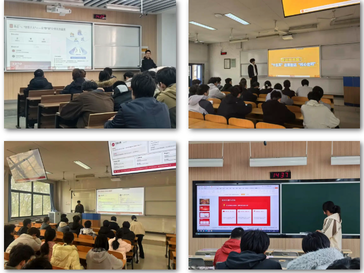 学院领导带头走访课堂和周见面现场,了解学生返校适应情况,围绕学业规划、职业发展等与学生深入交流,现场回应学生关切,把握学生新学期思想动态。二是班主任引航成长。担任班主任的专业课教师组织召开“开学第一课”主题班会,结合班级实际情况与专业课教学,引导学生调整心理状态、明确学习目标、做好学业规划。三是辅导员精细管理。辅导员老师组织开展年级周见面和主题班会,深入学生课堂掌握出勤情况,走访学生宿舍和学生活动现场,组织考研复试专题指导,针对学业困难学生谈心谈话和精准帮扶,在与学生的近距离交流中了解学生动态,帮助学生解决实际问题。