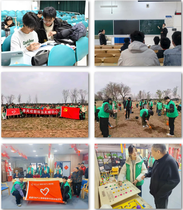 学业优秀学生组建互助帮扶小组,开展课程答疑与经验分享活动,以朋辈力量帮助补考学生培养积极心态、攻克知识薄弱环节。二是志愿服务奉献社会。学院积极响应三月学雷锋志愿服务活动号召,组织学生赴汉长安城未央宫国家遗址公园开展“春风吹新绿,蓝天映初心”主题党日植树活动,以实际行动践行绿色发展理念;组织开展“情暖敬老院,志愿显担当”主题志愿服务,为陕西孝道坊瑞颐医养院老人送去温暖与陪伴。三是实践反思知行合一。学院认真做好寒假社会实践总结宣传及优秀评选,引导学生总结反思寒假社会实践成果,从实践中深刻体会家国情怀与使命担当。