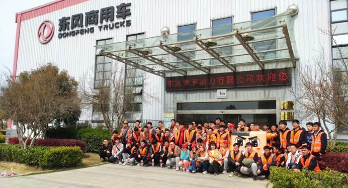 同学们在东风商用车办公楼前合影
