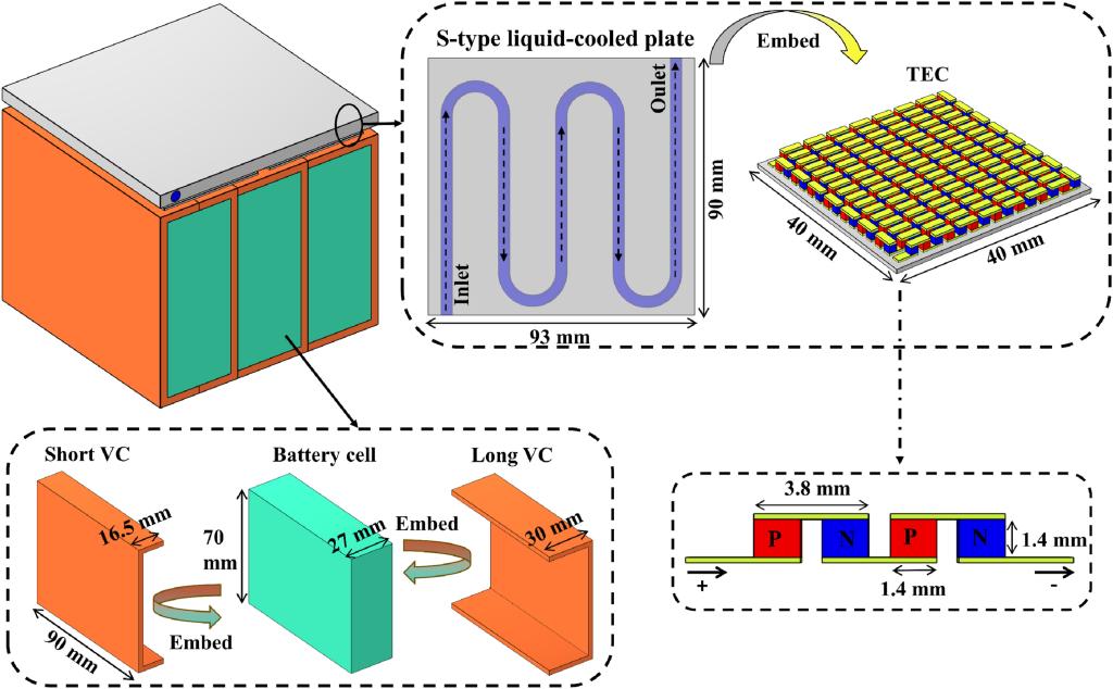 新型电池热管理系统的几何结构示意图