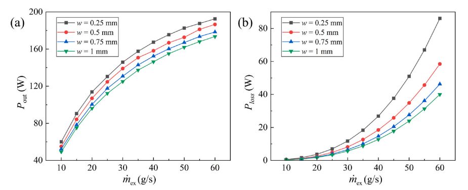 图2微通道参数在不同尾气质量流量下对系统输出性能的影响