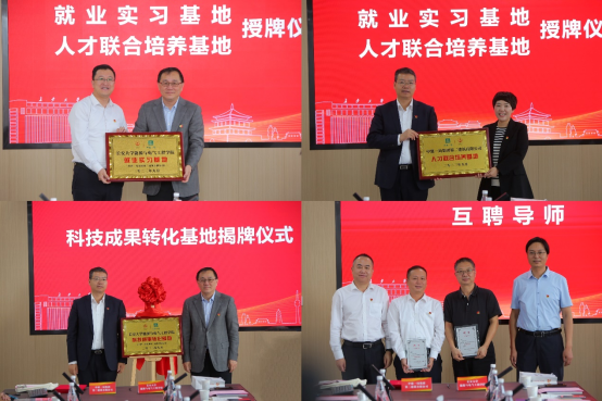 会上,相关领导为“人才联合培养基地”“就业实习基地”“科技成果转化基地”揭牌,并为互聘专家颁发聘书。