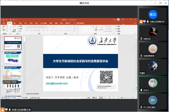 2022年11月19日19时,qy千亿球友会大学生科技创新创业协会通过线上方式举办了以“节能减排,绿色能源”为主题的大学生节能减排社会实践与科技竞赛校内预选赛宣讲会。本次宣讲会邀请到了运输工程系指导教师刘意立。
