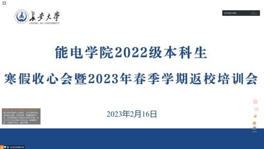 一年之计在于春,为保障广大学生在新学期平稳起航、顺利远航,为新学期各项工作顺利开展打下坚实基础,我院于2月16日晚通过腾讯会议举办了2022级本科生寒假收心会暨返校培训会,学院全体2022级本科生及部分家长参加会议,培训会由我院2022级本科生辅导员刘泽主讲。