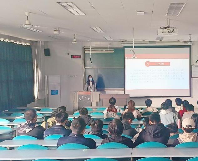 会议伊始,李芮羽带领同学们认真回顾了党的二十大报告,进一步理解大会精神和战略安排,并强调作为大学生应该如何践行党的二十大精神,呼吁同学们将个人“小我”融入国家发展的“大我”,用实际行动践行党的二十大精神。