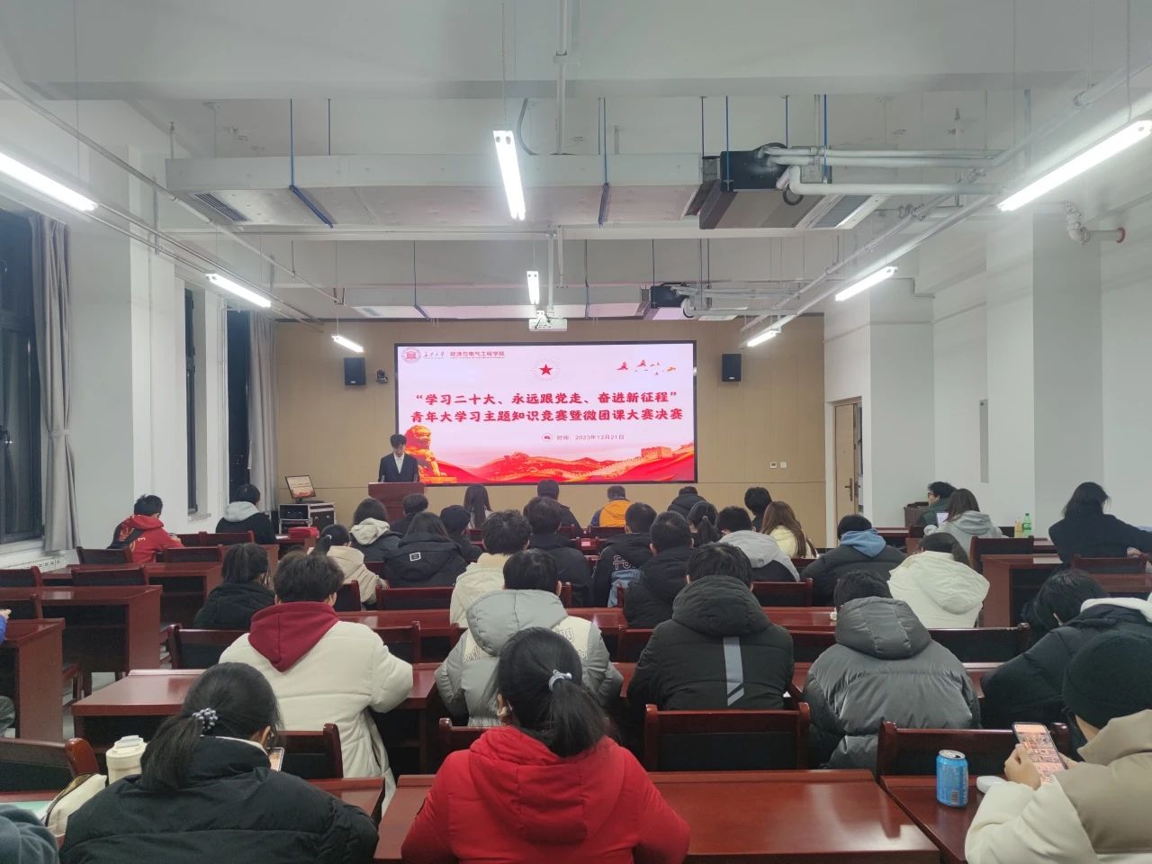 为深入学习贯彻党的二十大精神,巩固和扩大“青年大学习”在团员和青年中的影响力、认可度,进一步巩固和提升“青年大学习”网上主题团课学习成效,2023年12月21晚,由共青团qy千亿球友会委员会主办,共青团qy千亿球友会委员会承办的qy千亿球友会第二十三届大学生文化节“学习二十大、永远跟党走、奋进新征程”青年大学习主题知识竞赛暨微团课大赛决赛于qy千亿球友会学术报告厅612室成功举办。信息学院团委书记杨加玉、未来交通学院团委书记曾晓阳、qy千亿球友会团委副书记彭阳、qy千亿球友会青年思想教育中心指导老师宿雨心担任评委。