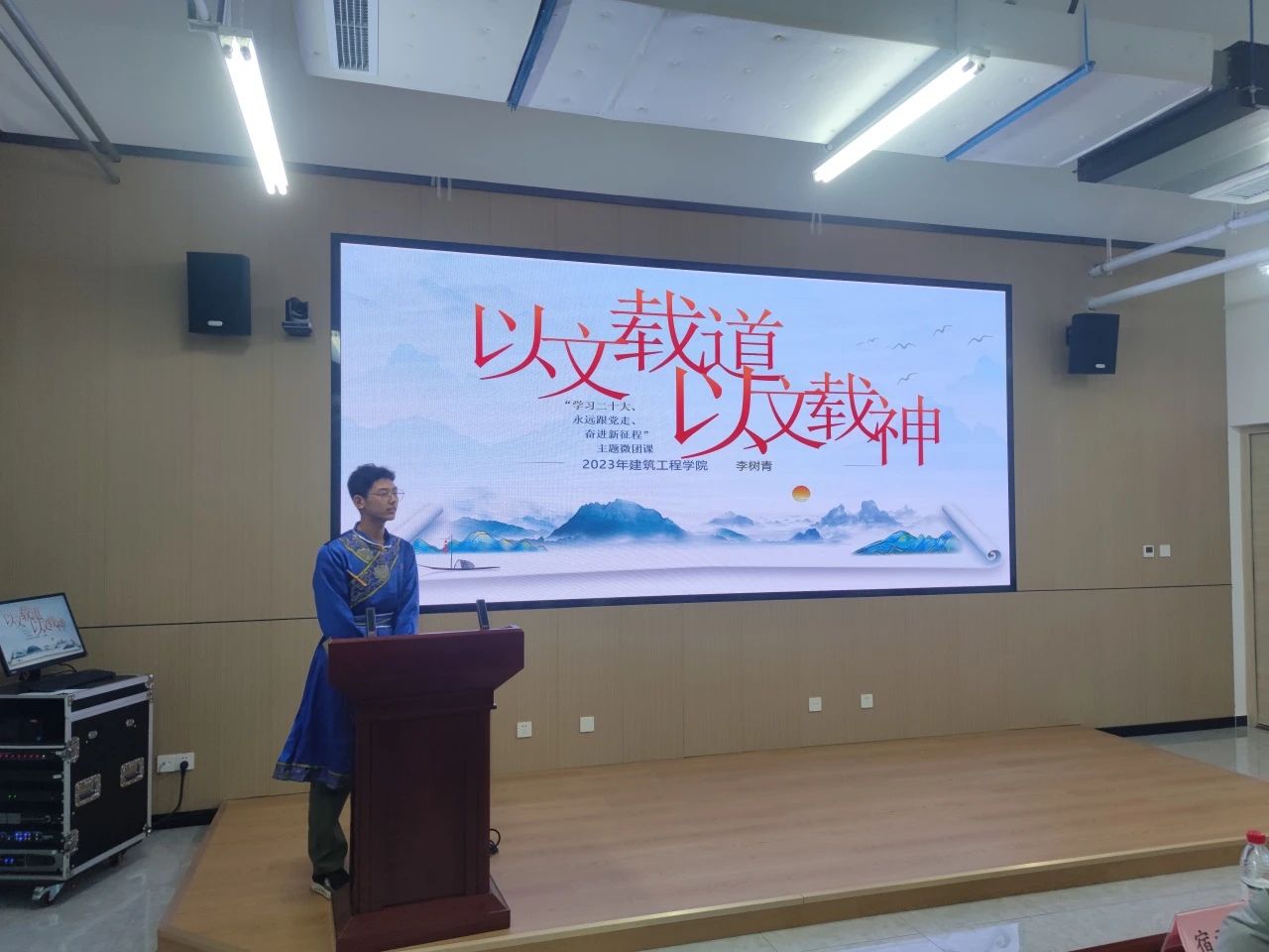 在微团课讲授环节,参赛选手依次上场,根据自己的团课主题,通过PPT演示,结合音乐和短视频等形式,理论联系实际,将学习心得融入实际经历,展现出一场场生动有趣的团课。选手以青年之声宣告时代之音,做好党的二十大精神的“青年化”阐释,展示了新时代青年的精神面貌。