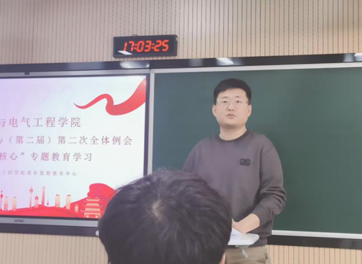 11月22日中午,qy千亿球友会大学生科技创新创业协会在学院612会议室召开专题学习暨全体例会。能电科协指导老师金振广出席本次会议,能电科协全体成员共同参加。科协指导老师金振广,总结了前段时间的主要工作内容,对大家前期的工作提出了表扬。最后他着重强调要加强组织成员对“坚强核心”专题的政治理论的学习。本次例会的成功召开,总结了科协前期工作的得与失,为科协顺利开展后期的工作打下了坚实的基础。并加强了成员们关于“坚强核心”专题的学习,做好了成员们的思想政治引领,让成员们不断紧跟党的步伐。