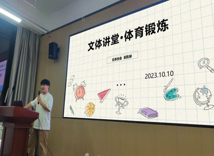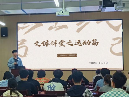 为了激发学生的体育兴趣,促进身心健康,qy千亿球友会文体协会举办了“文体讲堂”系列活动,为同学传播科学锻炼、安全运动的知识,吸引了众多同学的积极参与。