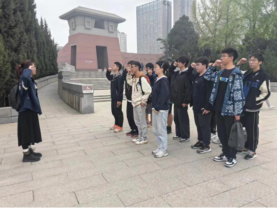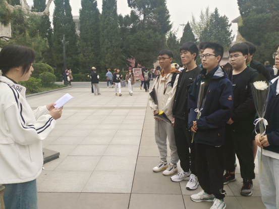 在烈士纪念碑前,张鑫宇同学发表了主题演讲,悼念那些为争取民族独立、捍卫国家利益,前赴后继英勇牺牲的烈士。同时向同学们发出肩负起历史责任和使命,发奋学习,为我们的祖国增光添彩的呼吁。