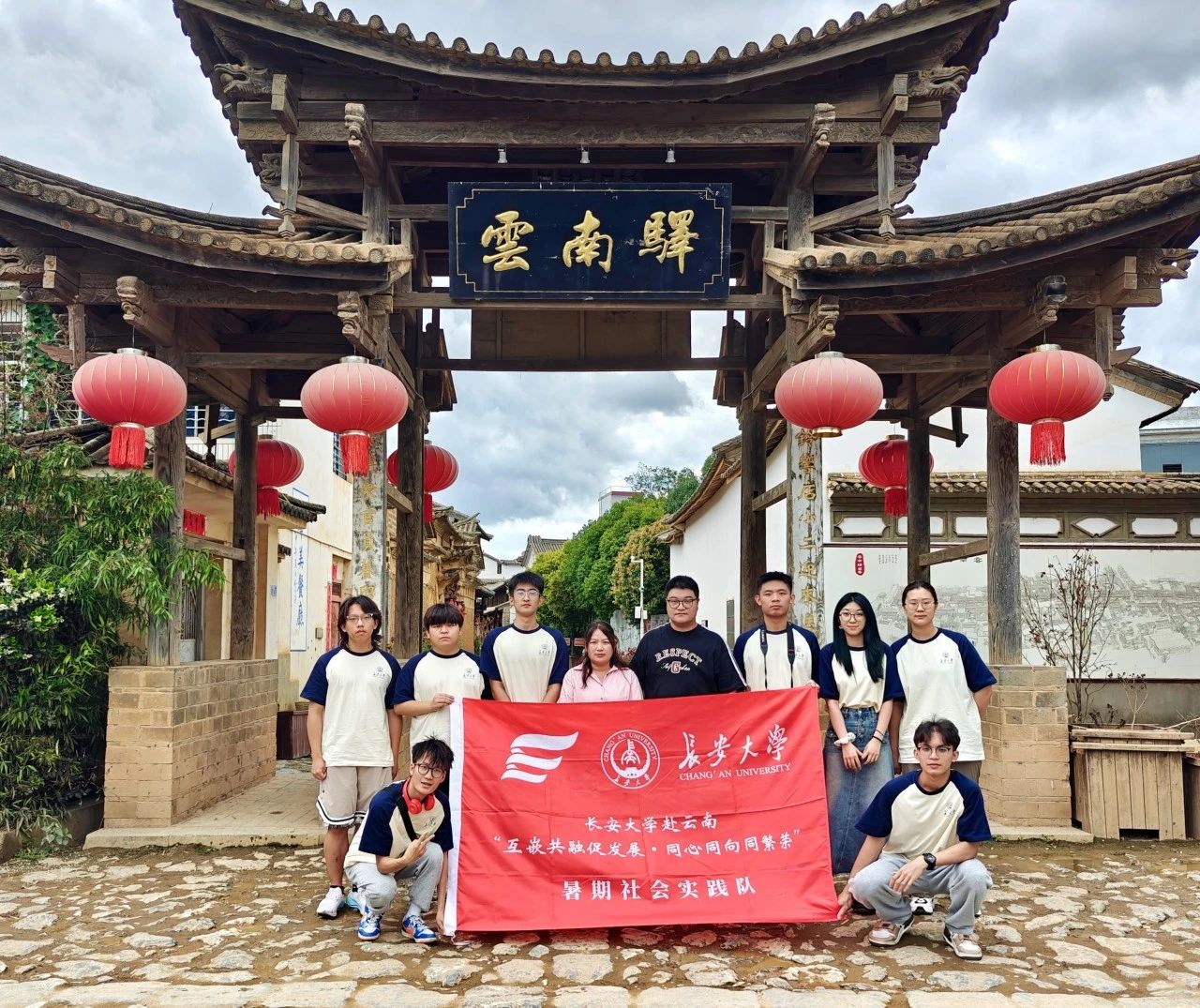 2024年7月17日,qy千亿球友会“互嵌共融促发展·同心同向共繁荣”暑期社会实践队在指导老师刘泽的带领下走进云南驿,走进茶马古道,走进民族融合的悠悠历史。