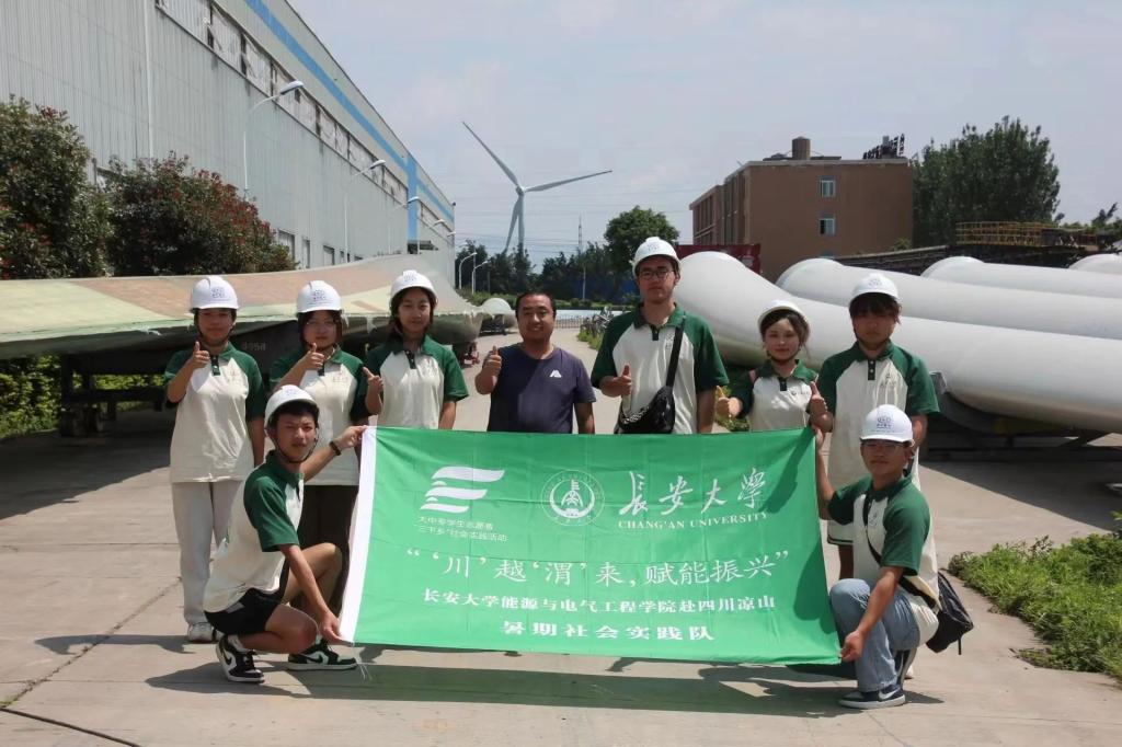 绿色动力,驱动未来。在技术人员的带领下,实践队走进东方电气的生产车间。工人们正忙碌着将一层如同“布”一般的材料,铺在半个叶片的模具上。来到厂房外,一排排制成的叶片正“躺”在车间外准备运往各地。通过实地参观和调研,实践队深入感受到以东方电气为代表的中国企业正乘新能源之势,御风前行,为全球能源转型贡献中国智慧、中国方案、中国力量,并为此感到由衷的骄傲自豪 !
