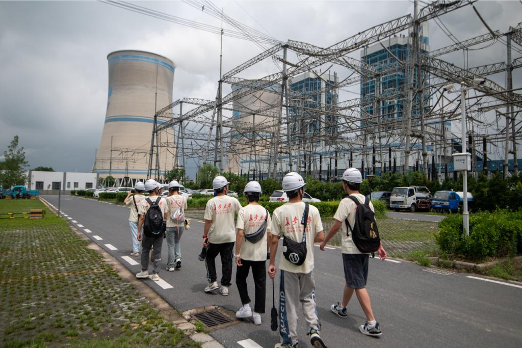 队员们走进句容发电厂和戚墅发电公司,了解到以煤电为主,光伏发电为辅的产业布局,学习了全国首套针对火力机组的碳捕集仿真优化系统和二氧化碳转化甲醇的示范装置,也观摩了到一系列的脱硫,减碳的废气废水净化装置,各公司不拘泥于传统火力发电,积极探索,朝着绿色、低碳、可持续的方向迈进;在理想汽车的总装车间,实践队员看到了自动化生产线的高效运行,在机械手、无人运输车等相关自动化设备的统筹协作下,一块块钢板经过冲压、焊装、涂装、总装等工艺,最终变成了一辆辆崭新的新能源车;在金坛电力公司,实践队员亲眼见到由中盐集团、中国华能集团和清华大学三方共建的金坛盐穴压缩空气储能电站,它以世界首创的“非补燃”技术,将闲置的地下空间变成了绿色“充电宝”,有效提升了电网调节能力,推动源、网、荷、储协同发力。