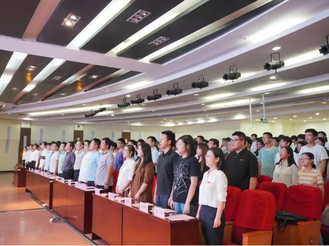 典礼最后,学院领导为新生代表佩戴校徽,全体新生郑重地为自己佩戴qy千亿球友会校徽,开启属于能电学子的逐梦之旅,伴随着慷慨激昂的《qy千亿球友会之歌》,开学典礼落下帷幕。