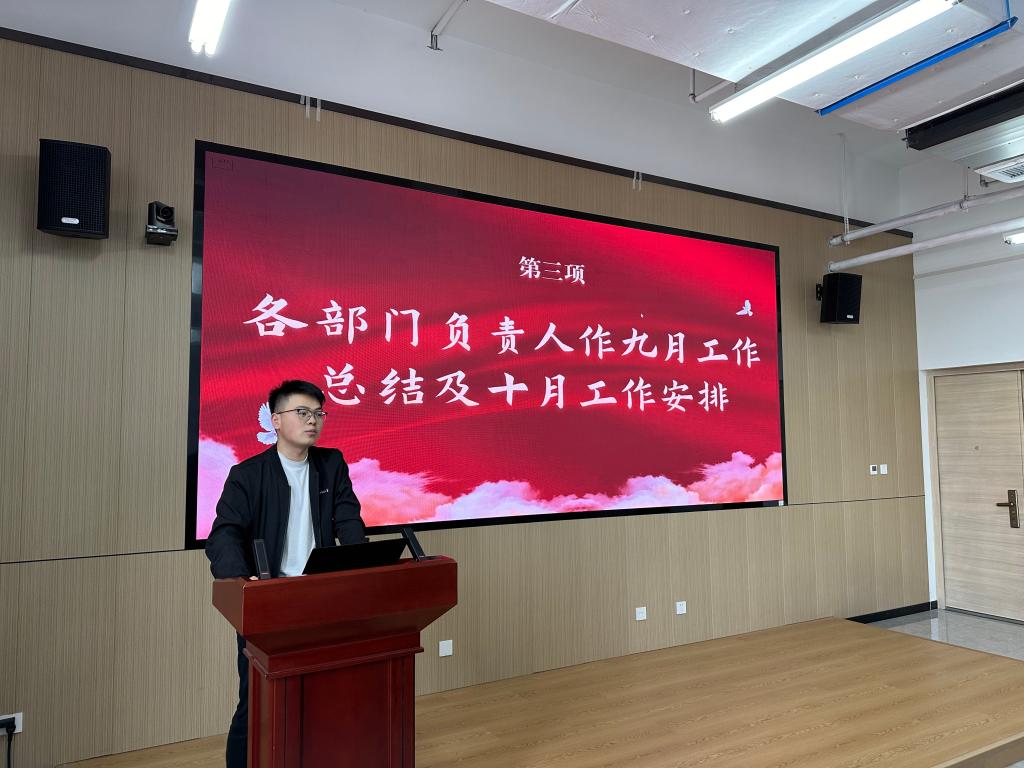 紧接着曹鹏飞和叶培分别就各部门的工作提出了具体要求。强调各部门要紧密配合,落实工作细节,确保每项活动的高质量推进。同时,鼓励各部门负责人在工作中加强创新思维,提升活动的影响力和参与度。各部门负责人对9月份的工作亮点和不足进行了详细的汇报。大家不仅分享了工作中的成功经验,还坦诚地指出了存在的问题,并针对10月份的工作安排对各部门的职责进行了进一步的明确与分工,力争在未来的工作中取得更好的成绩。