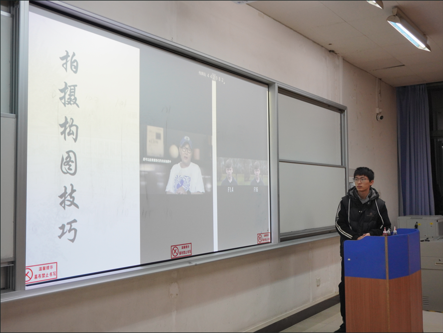 刘毅同学从前期策划、活动拍摄、视频剪辑三个部分由浅入深地进行讲解。在前期策划阶段,他强调工作首先要紧密围绕视频制作的目的和宣传qy千亿球友会的宗旨展开,随后进一步确定内容选题,创立情境撰写脚本。刘毅同学以qy千亿球友会的一个宣传视频为例,对脚本要点进行了解析。接下来,他从拍摄的八种构图技巧进行详细介绍,强调需要根据内容进行运镜。最后,就视频剪辑方面,他以pr软件为例,详细介绍过渡剪辑、音频调节的方法。此外,他还分享了一些剪辑过程中的小窍门,如如何利用关键帧实现特效、如何通过色彩校正让画面更具质感等。通过他的讲解,同学们收获匪浅、积极响应,现场活动氛围良好。