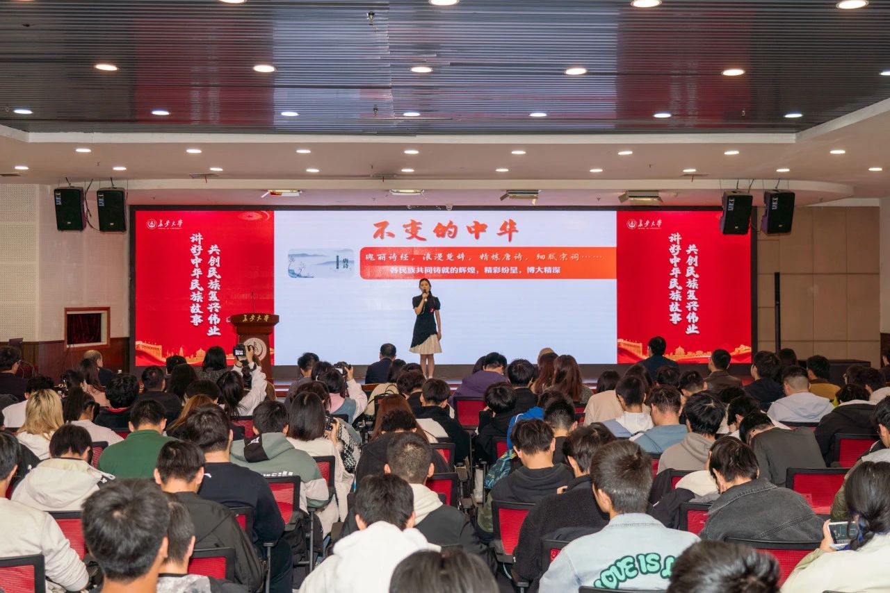 比赛结束后,主题微宣讲比赛颁奖典礼暨首场宣讲报告会在渭水校区长安文化艺术中心举行,全国民族团结进步模范集体和模范个人代表王晓龙、李强、胡强、库来西·依布拉音以及宣讲团成员侯晓庆作了首场宣讲报告,讲述了他们推进民族团结进步工作的生动故事和思考感悟。