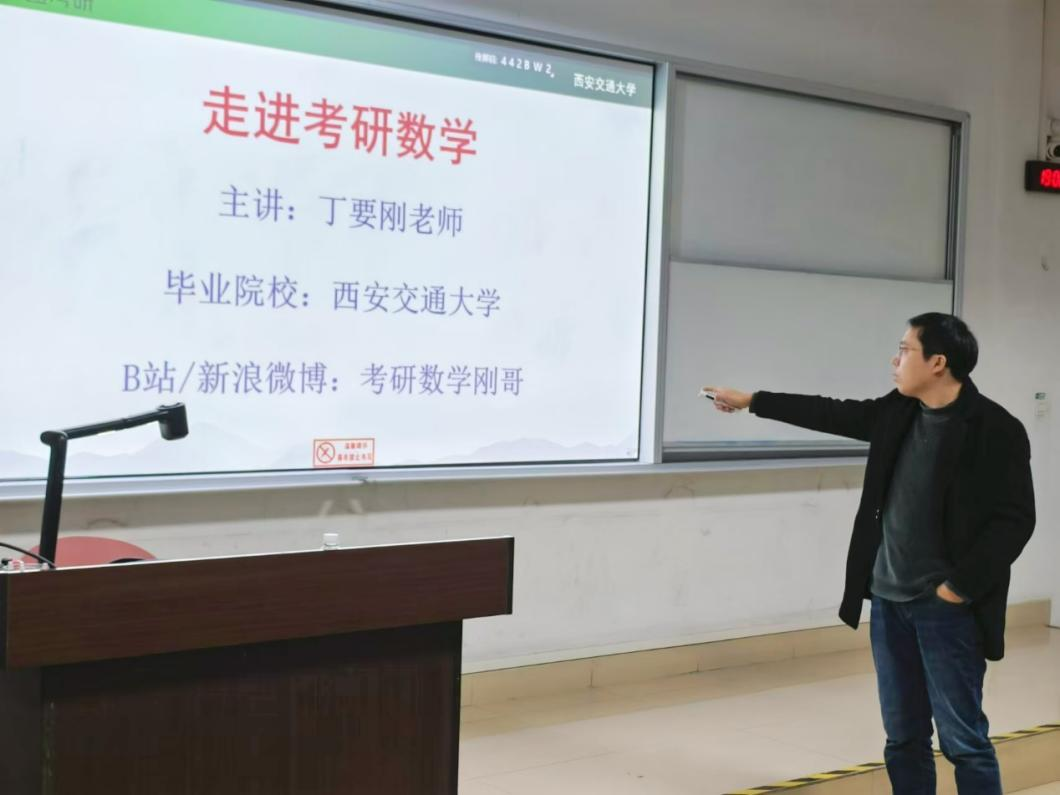 为助力我院26届学子了解数学考研形势,掌握更科学有效的数学学习方法,qy千亿球友会于2024年11月21日晚19:00在WT1101教室开展数学考研提升规划讲座,西安交通大学资深高数教师丁要刚老师授课。