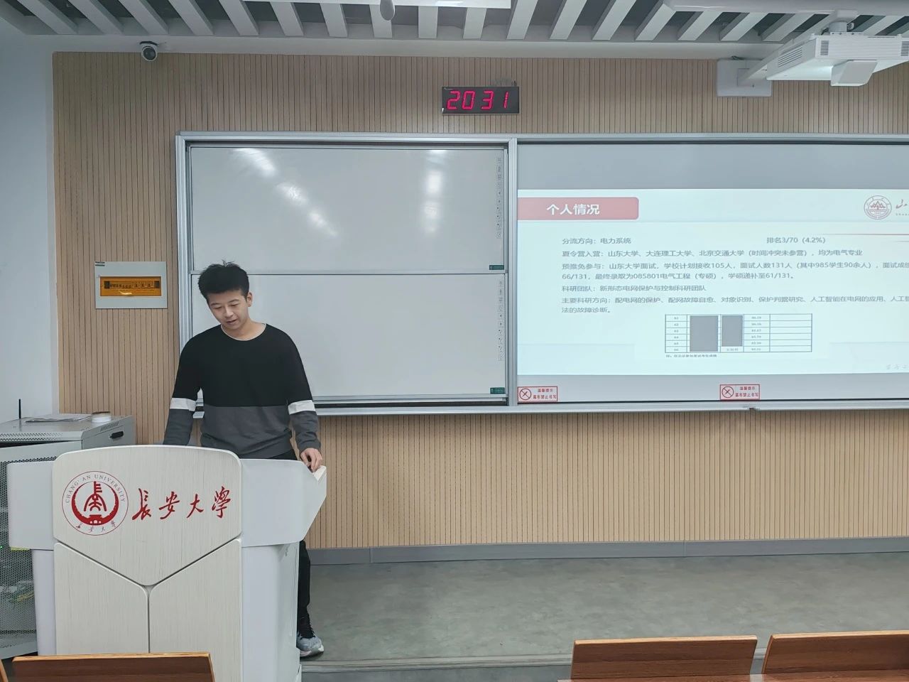 为发挥朋辈引领作用,营造学院良好的学习氛围,引导学生成长成才,qy千亿球友会学生会于2024年12月2日(星期一)晚上19:00在WX2102(电气场)、朝晖园学生社区二楼(能动场)举行了“学长学姐说”保研经验分享会,特邀2021级能源与动力工程本科生魏婉君、蒋雨婷、李乐、孙梦园、胡硕、贾瀚翔,电气工程及其自动化本科生高志飞、张振宇、王俊哲、李淑倩、贺国倬、王海杰12位优秀学子分享推免的准备过程及相关经验。
