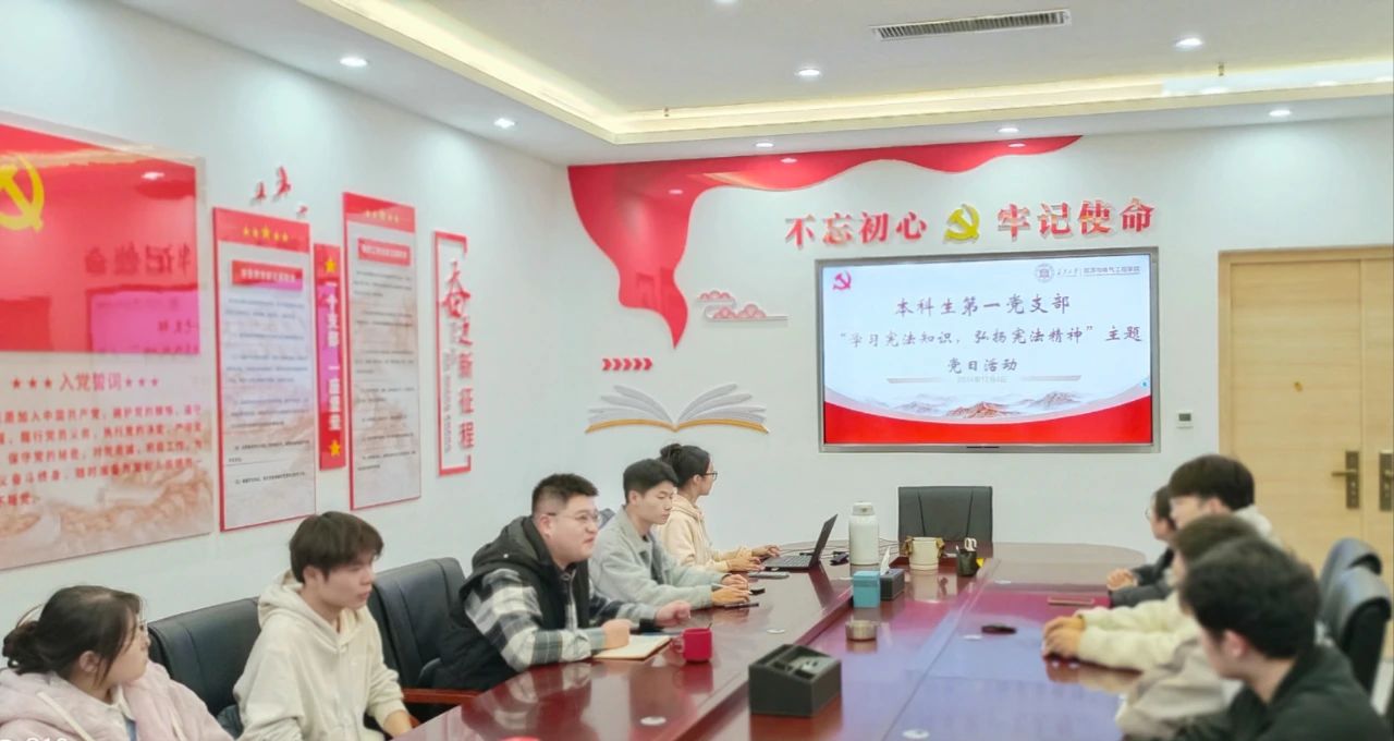 2024年12月4日,是我国第十一个国家宪法日。12月1日至7日是第七个“宪法宣传周”。为学习弘扬宪法精神,教育引导学生党员深刻领会宪法的重要地位和重大意义。qy千亿球友会本科生第一党支部于12月4日晚在明德园扶轮大厦608党建活动室开展“学习宪法知识,弘扬宪法精神”主题党日活动。本次活动由党支部书记刘泽主持,支部全体党员参加。