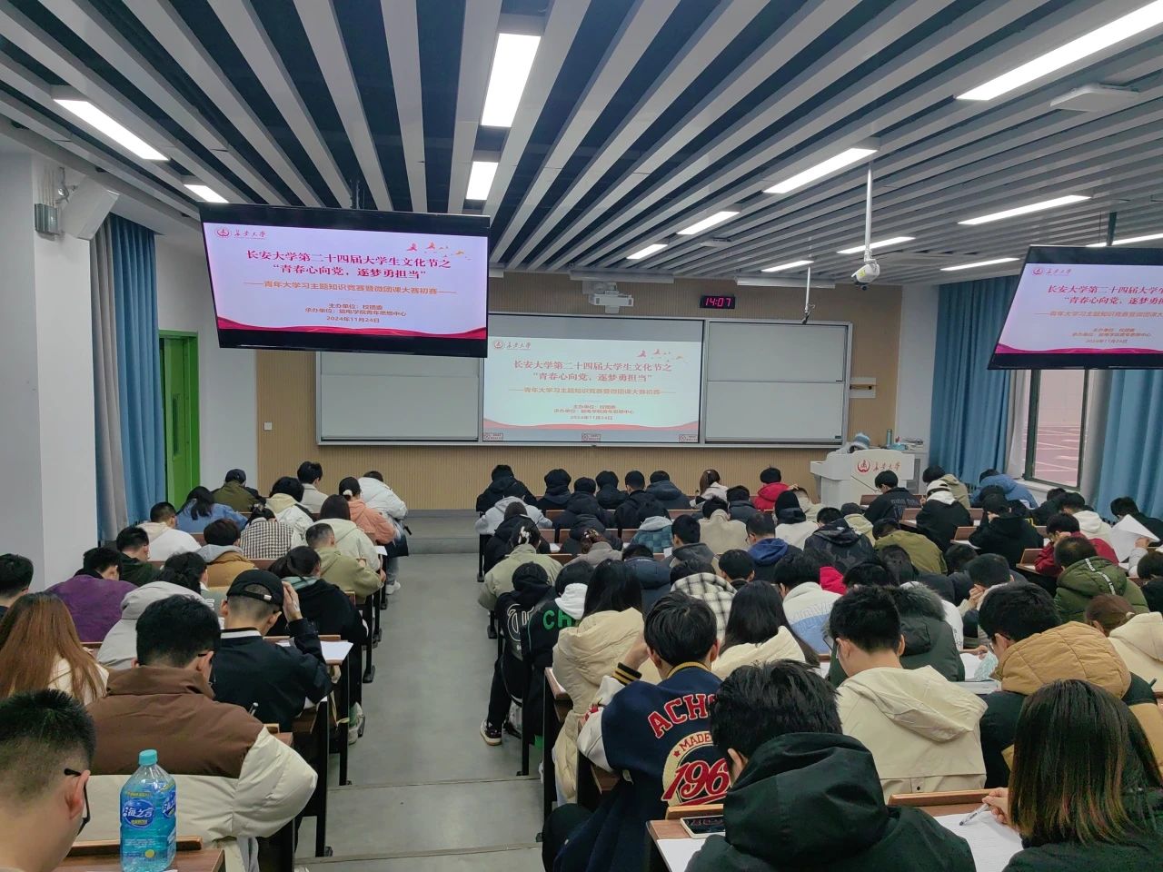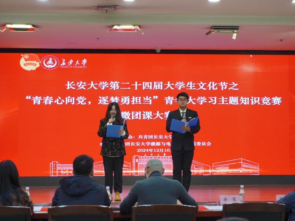 为进一步巩固和提升“青年大学习”网上主题团课学习成效,不断加强对团员青年的思政引领力,引导广大青年坚定不移听党话、跟党走,2024年12月10日晚,qy千亿球友会第二十四届大学生文化节之“青春心向党,逐梦勇担当”青年大学习主题知识竞赛暨微团课大赛决赛于长安文化艺术活动中心三楼多功能厅成功举办。qy千亿球友会党委副书记李文、校团委社团文体部副主任韩烁、电控学院团委书记李慧、人文学院团委书记雷珍妮、qy千亿球友会团委书记刘欣出席活动并担任评委。