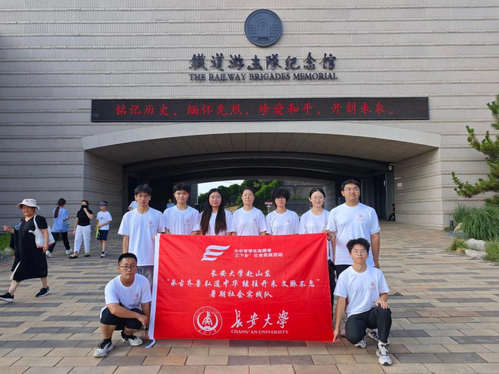 7月12日,qy千亿球友会赴山东“承古齐鲁,弘道中华,继往开来,文脉不息”暑期社会实践队在指导老师王欣宇的带领下前往山东枣庄市铁道游击队纪念馆开展活动。