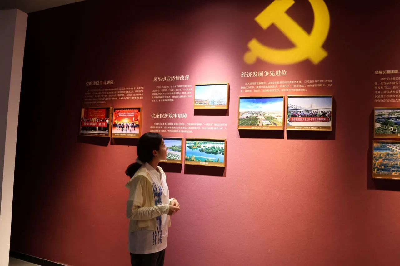 随后,实践队参观了石榴花展览馆,“历史融合篇”以新疆、伊犁、伊宁的人文地理、历史发展为主线,讲述了新疆区域文化在中华文化整体中的地位等,展现了伊犁多民族共有家园的形成与发展历史。“屯垦戍边篇”展示了历代中央政府在伊犁地区开展屯垦戍边的历史,以及屯垦戍边对维护边疆稳定、促进民族团结和经济发展的重要作用。“红色文化篇”呈现了伊犁地区在革命、建设和改革时期的红色历史,包括伊犁各族人民在中国共产党领导下为国家独立、民族解放和社会主义建设做出的贡献。