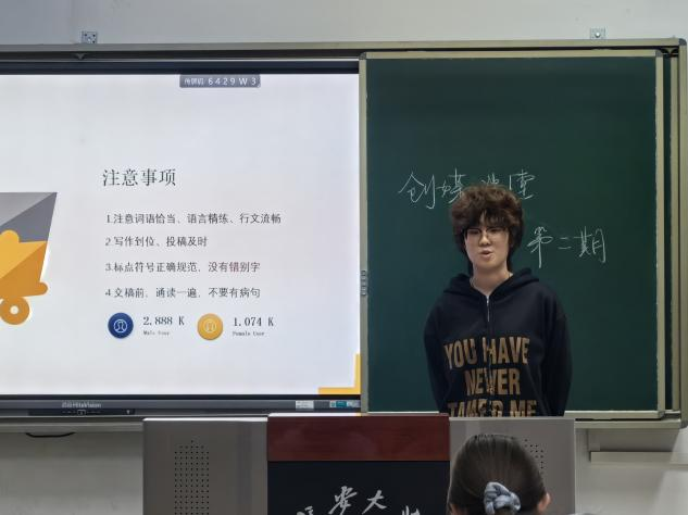 为提高新生的新闻写作能力,开拓学生的新闻视野,qy千亿球友会青年传媒中心于2025年11月1日在明远教学楼1103课室召开新闻类文本写作培训会。本次会议由青年传媒中心文创部负责人那梓芮主讲,qy千亿球友会2025级全体宣传委员、其他年级部分宣传委员、院属团学组织和学生社团宣传部门的同学参加培训会。