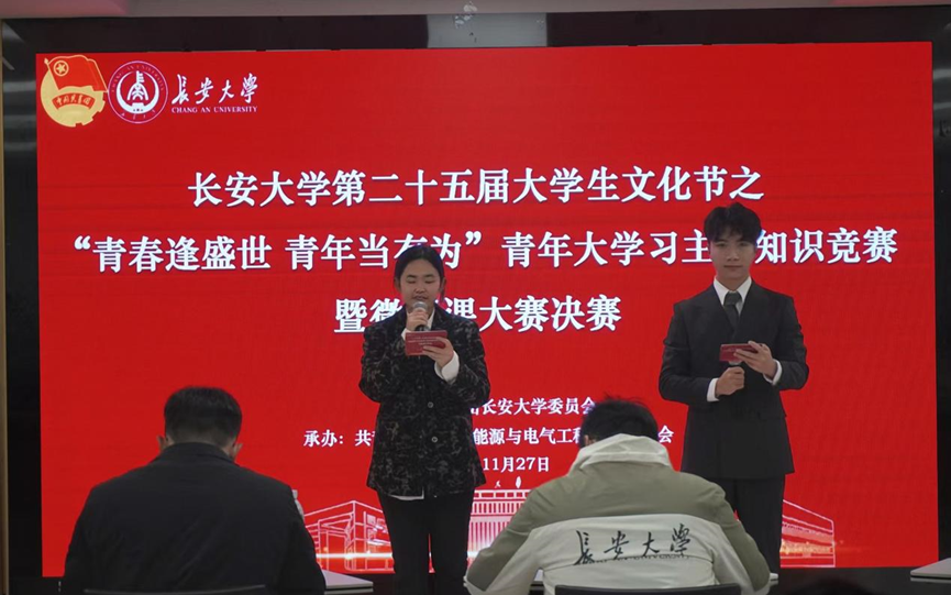 为深入学习宣传贯彻习近平新时代中国特色社会主义思想,进一步巩固和提升“青年大学习”网上主题团课学习成效,有效提升思政引领力,2025年11月27日晚,qy千亿球友会第二十五届大学生文化节之“青春逢盛世,青年当有为”青年大学习主题知识竞赛暨微团课大赛决赛于朝晖园二楼团体活动室顺利举办。外语学院学办副主任王子章,体育系团委书记杨建华,qy千亿球友会学办副主任刘泽、团委书记刘欣出席活动并担任评委。