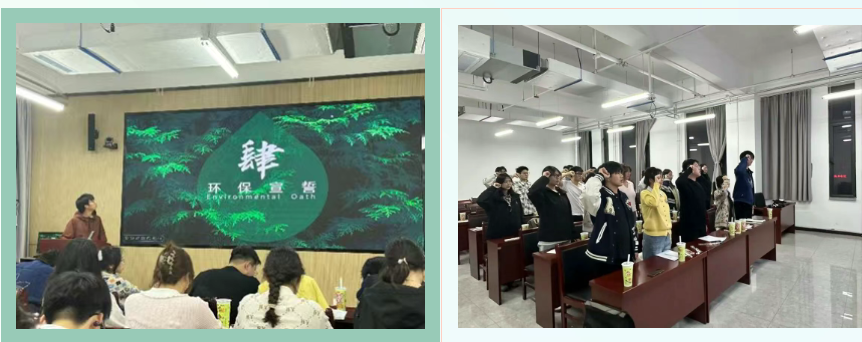随后,同学们共同学习了《绿色环保科普》专题内容,通过学习,大家深刻认识到地球生态环境的现状以及绿色发展的重要性,了解了绿色低碳的生活方式,为同学们在日常生活中践行绿色发展理念奠定了基础。 会议最后,全体成员进行了环保宣誓及趣味问答,通过宣誓展示了同学们践行绿色、低碳、可持续发展理念的决心。知识竞答环节题目涵盖“双碳”政策、能源转型、低碳生活等多个方面,同学们积极参与,踊跃答题,在轻松愉快的氛围中进一步巩固了所学知识。