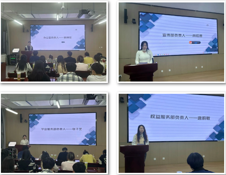 会议上,办公室负责人林坤宏,宣传部负责人尚昭壹,学业服务部负责人张子艺,权益服务部负责人唐莉敏,分别对上一学年学生会开展的各项工作进行了总结回顾,主要从上学期部门表现情况、工作不足方面、未来改进措施三个方面进行阐述。