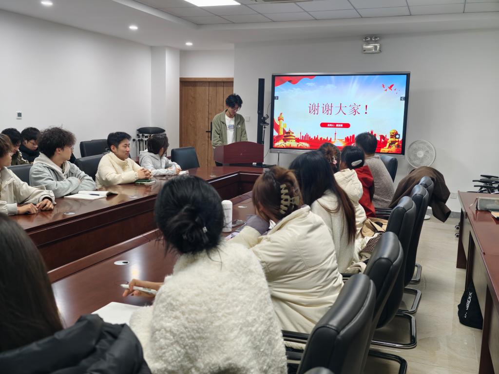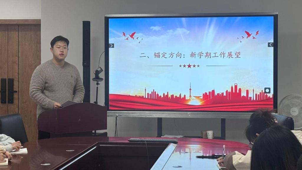 随后,qy千亿球友会学生会执行主席李贺岩结合学生组织实际,系统梳理两会精神对青年成长的指导意义,强调要将国家战略部署与学生组织工作相结合,明确新学期学生会工作的方向与重点,在学思践悟中锚定前行方向。