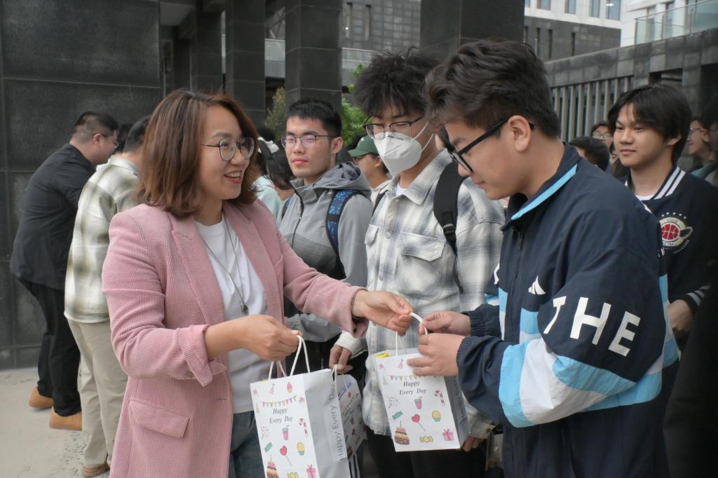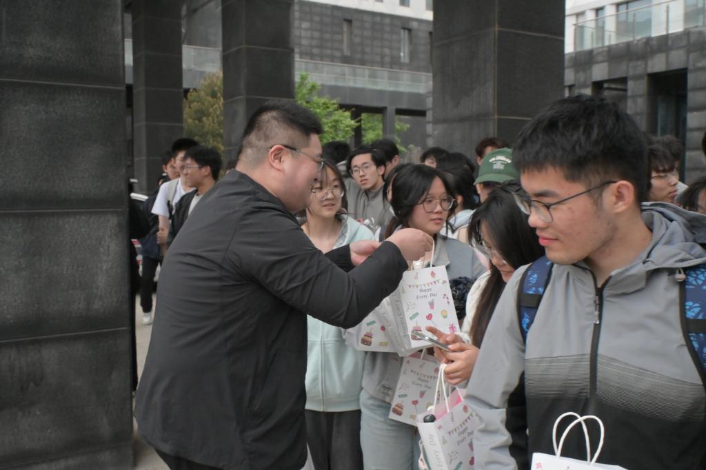 随后,各位老师为运动员代表发放慰问品。每一份慰问品都承载着学院对运动员们的深切关怀与美好祝愿,让运动员们在赛前感受到了学院大家庭的温暖,进一步激发了大家的参赛热情与斗志。
